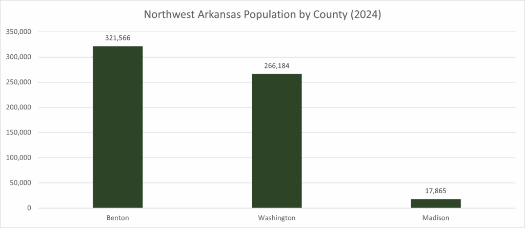 Home to four of the state’s largest cities of Fayetteville, Springdale, Rogers, and Bentonville, Northwest Arkansas (NWA) continues to gain national recognition as one of the most desirable places to live in the country. The region contains more than 260 multifamily properties with over 45,000 units and benefits from powerful long-term demographic momentum. Fayetteville alone has experienced sustained annual population growth well above national averages, and Benton County is the fastest-growing county in the state. According to Milken Institute projections, the Fayetteville MSA population is expected to increase by more than 70% by 2060, underscoring the region’s long-term demand trajectory.
